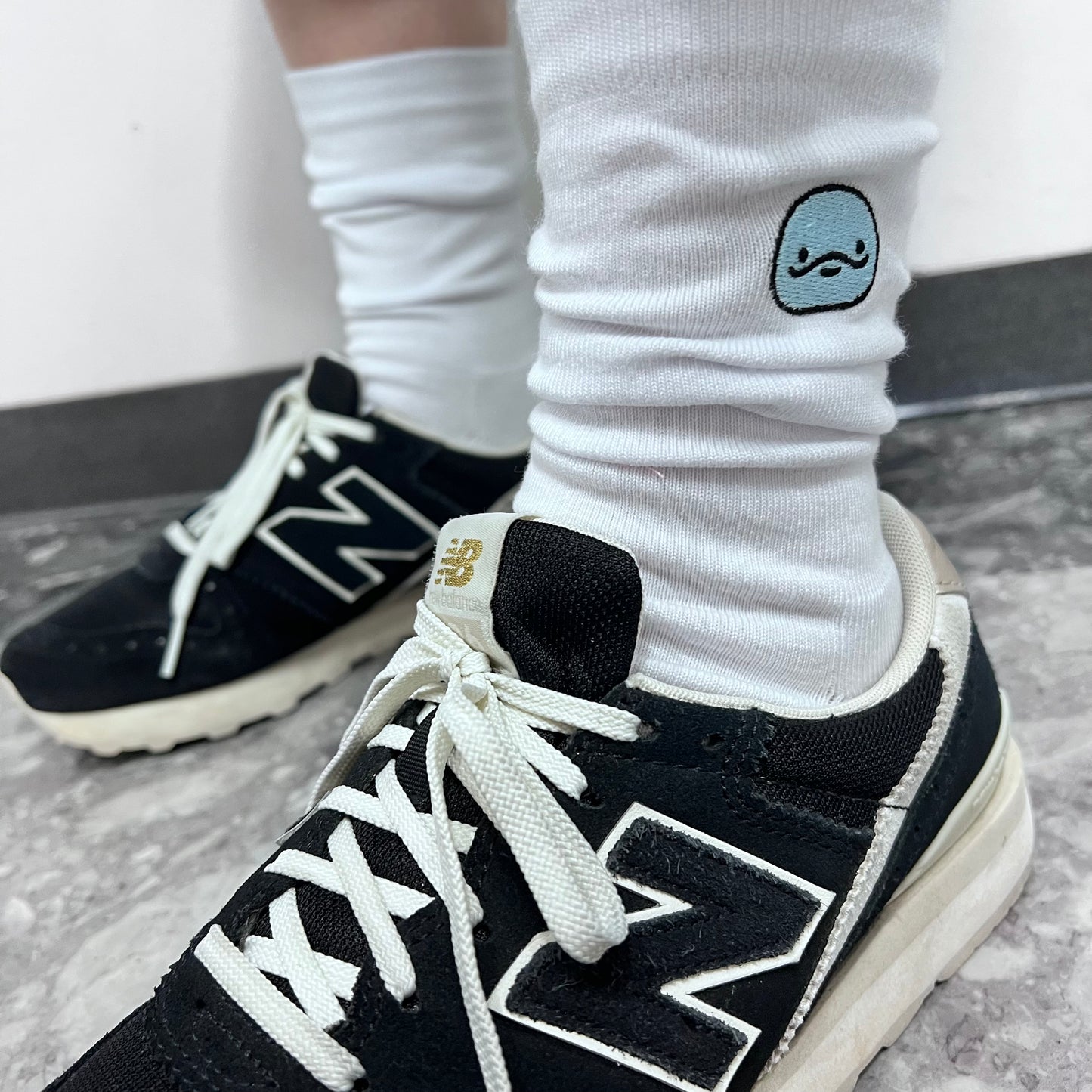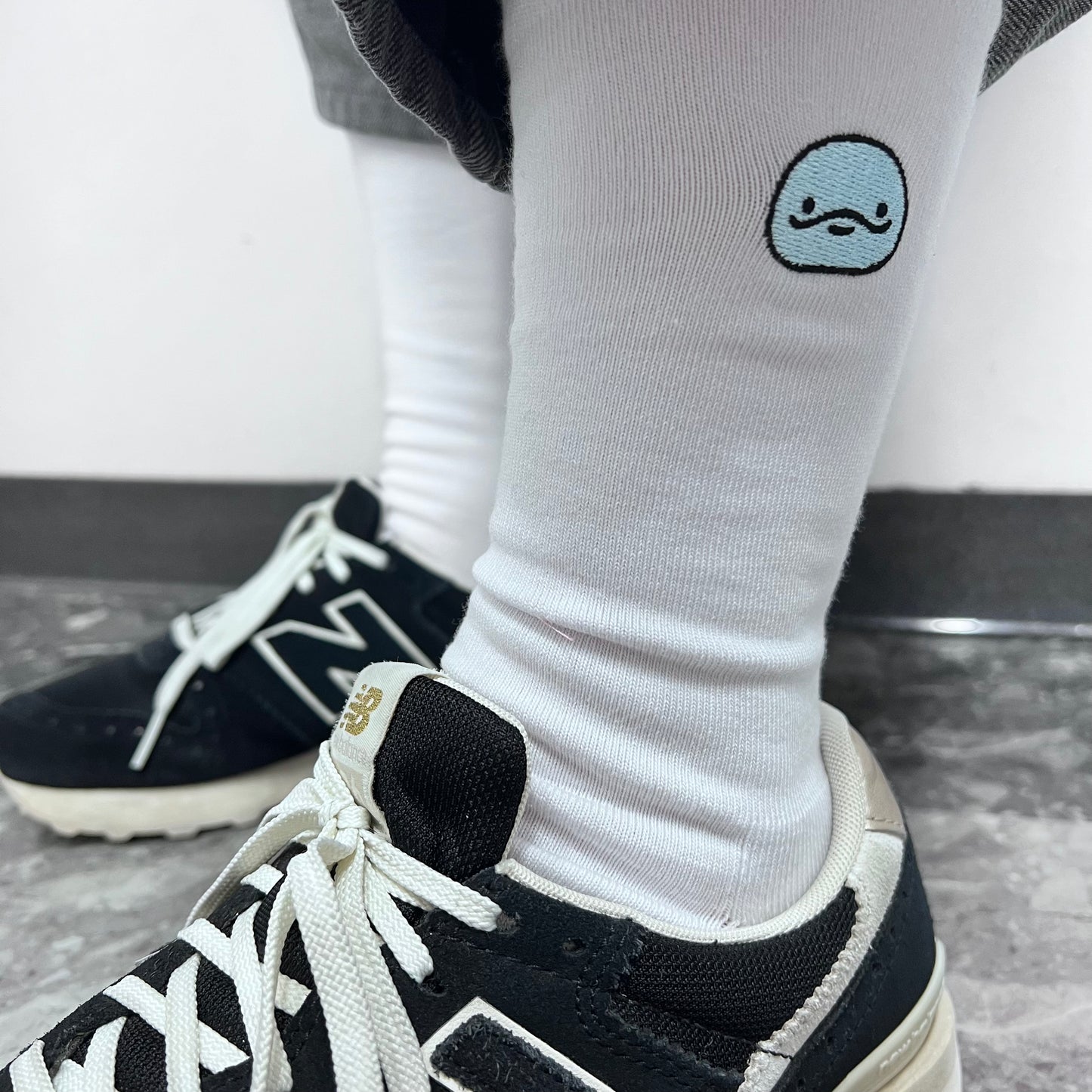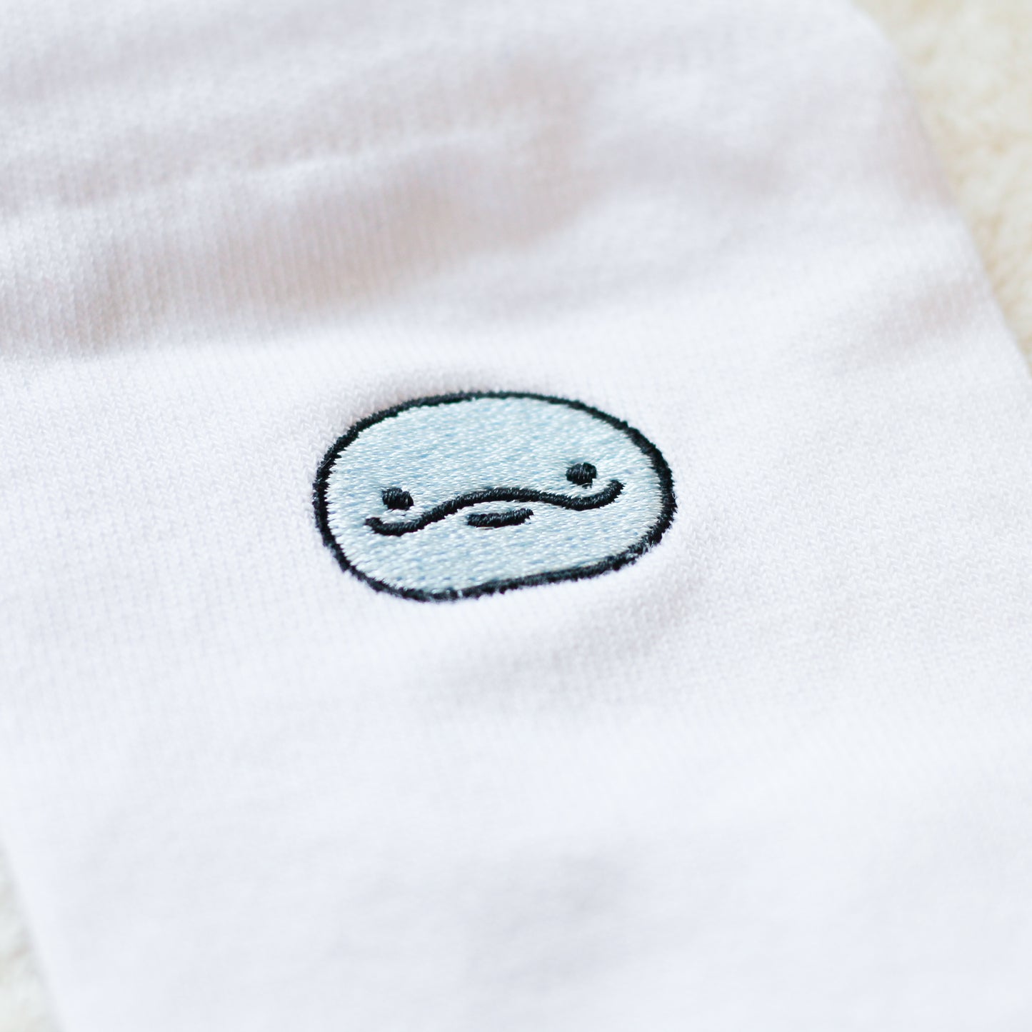 ぼくの顔の刺繍がどどーんと入った靴下だよ✨